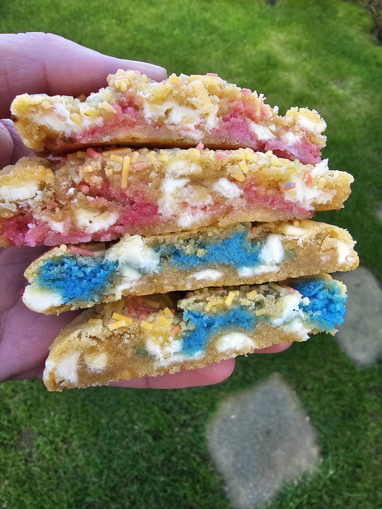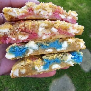 I offer over 30 flavours of stuffed cookies, custom orders, special occasion boxes, gender reveal cookies.