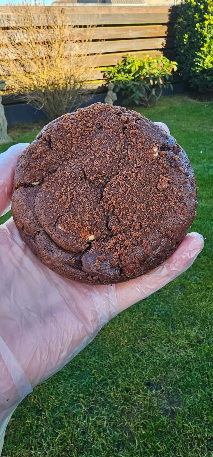 A rich chocolate cookie dough packed with milk, white, and dark chocolate chips, stuffed with a smooth Nutella centre. Finished with a crumb topping of crushed Bourbon biscuits for added crunch.